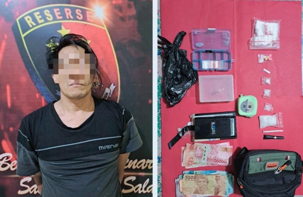 Saat menangkap Agus Polisi juga menemukan sejumlah barang bukti Narkoba dan timbangan digital serta sejumlah uang tunai.