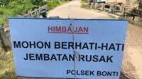 Jembatan Bonti-Parindu Rusak, Polisi Pasang Rambu Peringatan