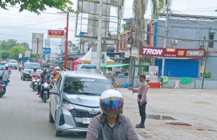Sintang, zonakalbar.id- Personil Polsek Sintang Kota Polres Sintang pada pukul 06:00 Wib pagi melaksanakan pengaturan lalu lintas di Jalan Raya Mt Haryono Gang Transito, Kelurahan Kapuas Kanan Hulu Kabupaten Sintang Kamis (12/12).