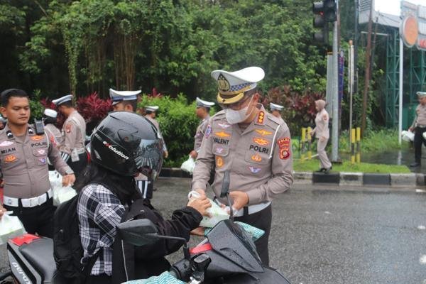 Sebanyak 15 personel Ditlantas dan 4 personel Ditsamapta dikerahkan untuk membagikan ratusan paket takjil kepada pengendara yang melintas. Selain berbagi makanan berbuka puasa, aparat kepolisian juga melakukan pengaturan lalu lintas guna memastikan kelancaran arus kendaraan di sekitar lokasi.