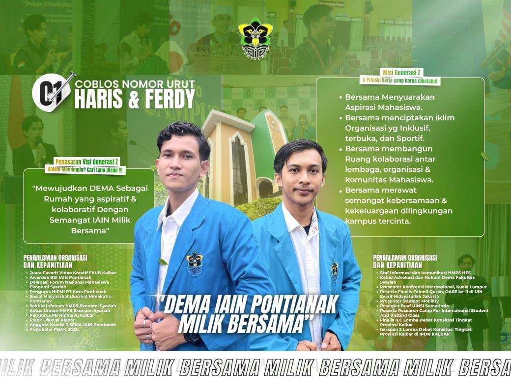 Melalui program kerja yang mengedepankan prinsip keterbukaan, Haris dan Ferdy optimistis mampu mengonsolidasikan seluruh potensi mahasiswa untuk mendorong perubahan positif di IAIN Pontianak.
