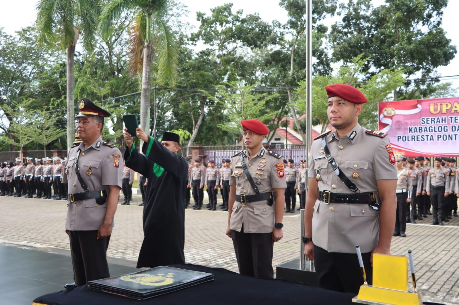 Pontianak, zonakalbar.id – Kapolresta Pontianak, Kombes Pol Adhe Hariadi memimpin upacara serah terima jabatan (sertijab) Kabaglog dan Kasat Reskrim Polresta Pontianak, Polda Kalbar, pada Sabtu (18/1).
