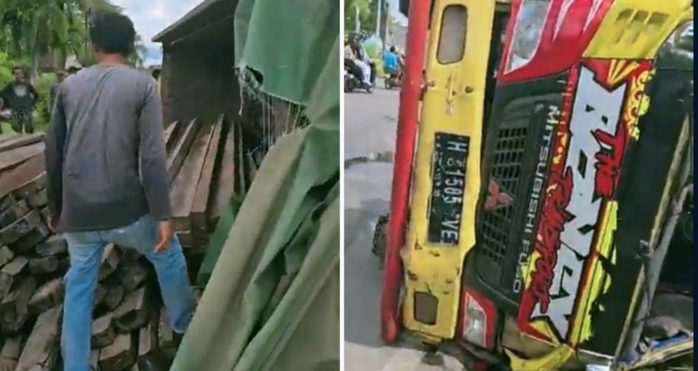 Dalam video yang beredar, terlihat suasana mencekam di lokasi kejadian. Truk besar itu tampak oleng sebelum akhirnya menghantam kendaraan lain yang tengah berhenti menunggu lampu hijau. Para pengguna jalan panik berusaha menyelamatkan diri, sementara kayu belian yang diangkut truk berserakan di jalan raya, menambah kekacauan di lokasi.