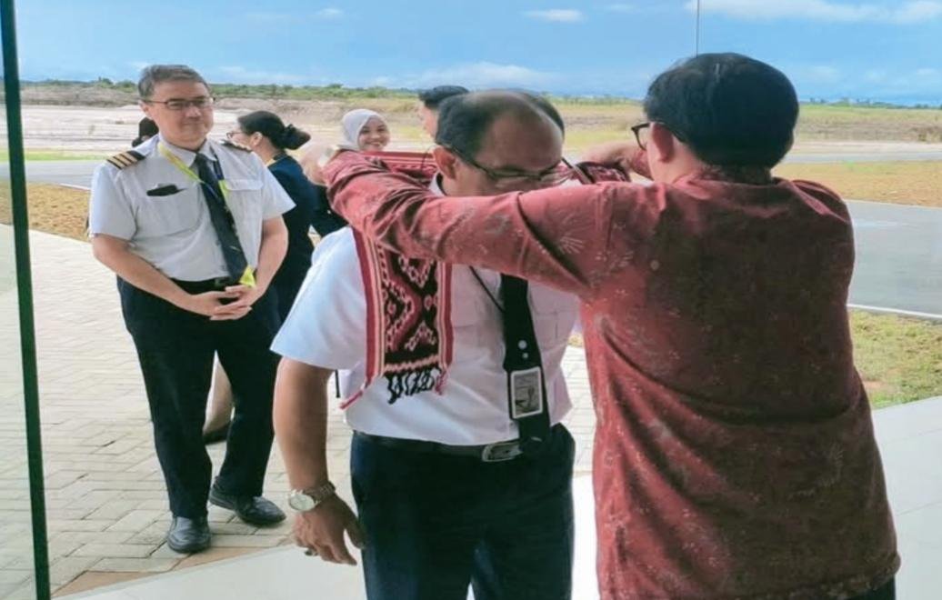 Muhamadin, yang hadir mewakili Wali Kota Tjhai Chui Mie, secara simbolis mengenakan kopiah dan sal khas Singkawang kepada para kru sebagai bentuk apresiasi. Ia mengungkapkan bahwa keberhasilan ini menjadi kebanggaan bagi masyarakat Singkawang, mengingat perubahan status penerbangan dari pesawat carter menjadi reguler.