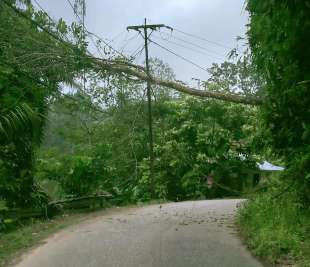 Pantauan di lokasi, batang pohon berukuran cukup besar melintang di atas kabel listrik dan tiang jaringan. Kondisi ini tidak hanya memutus aliran listrik, tetapi juga berpotensi membahayakan pengguna jalan yang melintas.
