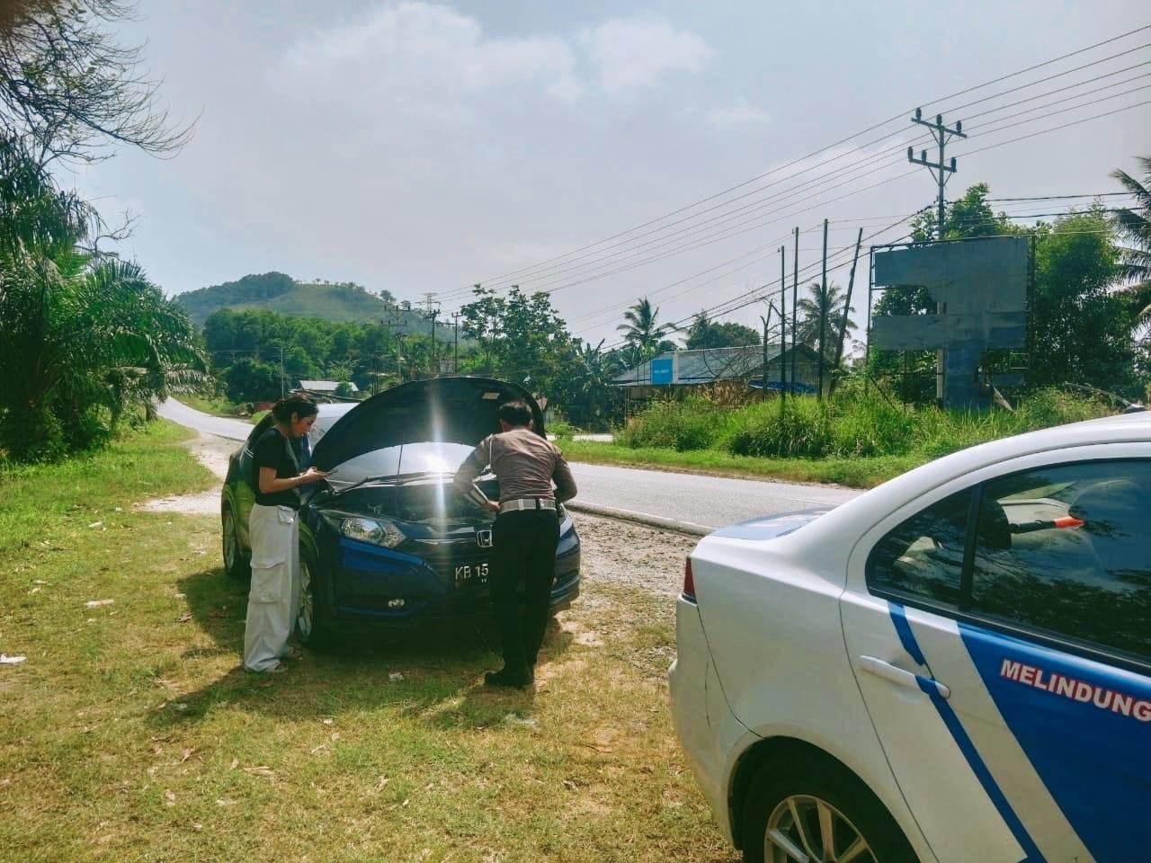 Bripda Galang dan Bripda Risky Vallen tengah melakukan patroli rutin ketika melihat sebuah mobil terhenti di pinggir jalan. Setelah mendekat, mereka mendapati mobil tersebut mengalami overheat. “Kami melihat ada masyarakat yang kesulitan dengan mobilnya saat patroli, kemudian kami berhenti untuk menanyakan apa yang terjadi,” kata Bripda Galang.