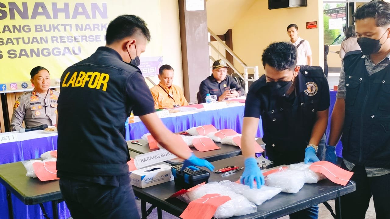 Dari hasil penggeledahan, polisi menemukan 18 paket sabu yang dibungkus lakban merah di dalam dua tas ransel. Pemeriksaan laboratorium memastikan seluruh barang bukti positif mengandung metamfetamin dan termasuk dalam narkotika golongan I.