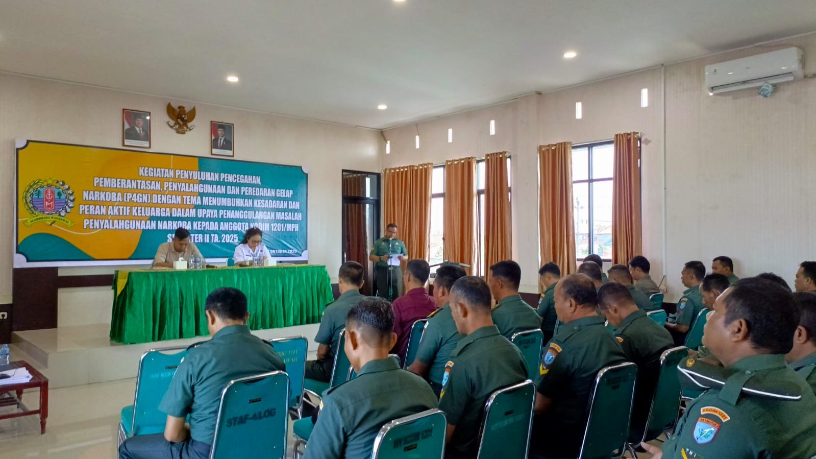 Mempawah, ZONA Kalbar.id— Kodim 1201/Mempawah menggelar penyuluhan pencegahan penyalahgunaan narkotika di Aula Makodim, Rabu, 5 November 2025. Kegiatan bertajuk “Menumbuhkan Kesadaran dan Peran Aktif Keluarga dalam Upaya Penanggulangan Masalah Penyalahgunaan Narkoba” ini menyasar prajurit dan PNS di lingkungan Kodim serta perwakilan Koramil.