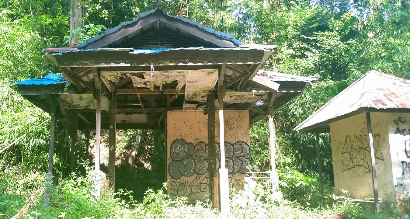 Pantauan di lokasi, sebagian besar atap bangunan sudah berlubang dan lapuk. Dinding-dindingnya dipenuhi coretan vandalisme, sementara semak belukar mengelilingi area rumah singgah. Kerusakan juga terlihat pada tiang penyangga yang mulai keropos, serta toilet yang tak lagi layak digunakan.